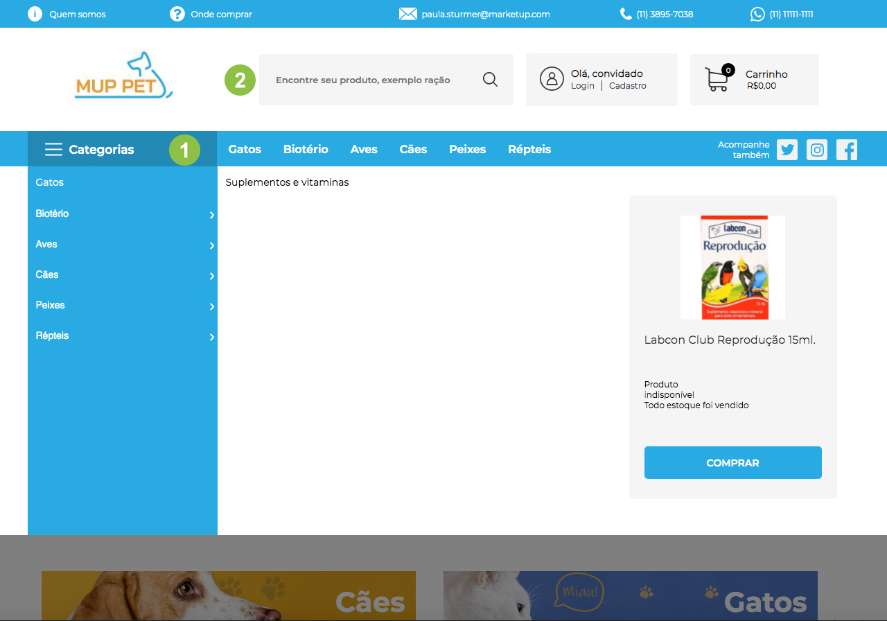 1. Busca através das categorias e subcategorias.