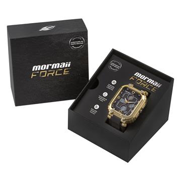 A linha Mormaii Force chega com o primeiro relógio nacional aprovado em teste militar de resistência. Extremamente resistente a impactos intensos, ele possui uma caixa bem robusta e estrutura de proteção revestida com parafusos. Projetado para enfrentar qualquer terreno e desenvolvido para se jogar em condições extremas sem preocupações, os modelos da linha possuem funcionalidades indispensáveis para qualquer aventureiro, como calendário, cronógrafo, timer, dual time e luz noturna para ambientes escuros, além da resistência à água em até 100 metros