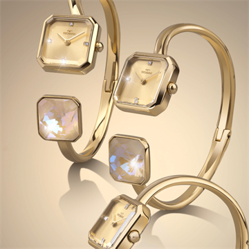 A linha Technos Crystal revoluciona a relojoaria tradicional para apresentar um novo clássico contemporâneo. Sua nova pulseira estruturada em forma de bracelete apresenta um design moderno e inovador, enquanto oferece um encaixe único no pulso. Em uma extremidade, o bracelete é adornado por um autêntico cristal solitário de origem austríaca, que reflete toda sua preciosidade. Ele é complementado pela delicada caixa com vidro facetado e mostrador de design minimalista, que possui pequenos cristais aplicados nas posições de 3/6/9/12 horas. Produto 100% em aço inoxidável em banho dourado, com resistência à água de 50 metros. Tamanho de caixa 20mm.